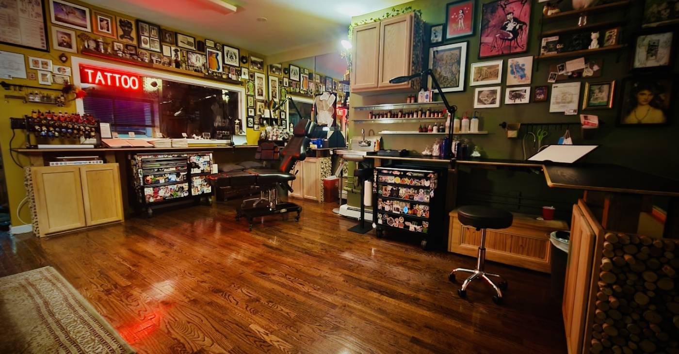 We have a unique selection of t-shirts, hoodies, beanies, custom art prints, stickers, and even custom-made aftercare and small gifts. We hope you enjoy our tattoo studio and our space, and there's plenty to look at.